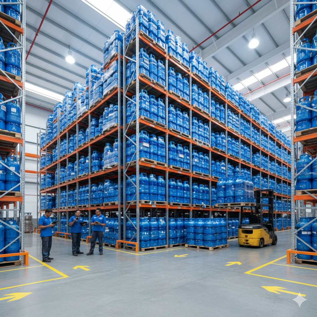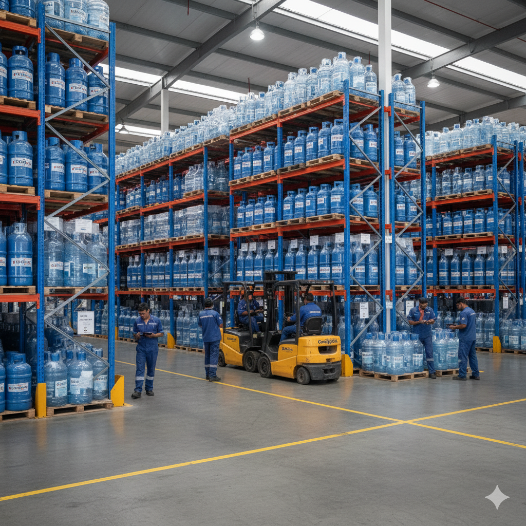Mantemos um estoque robusto de garrafões de água e botijões de gás, organizados em nosso galpão climatizado para garantir entrega rápida.